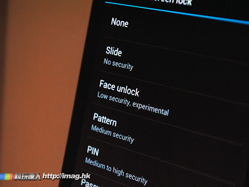 「Chok樣解鎖」- 這是Ice Cream Sandwich 另一個重要的更新Face Unlock,不過由於還是測試階段,Google也註明這是低安全性的選項,看來是綽頭而已。